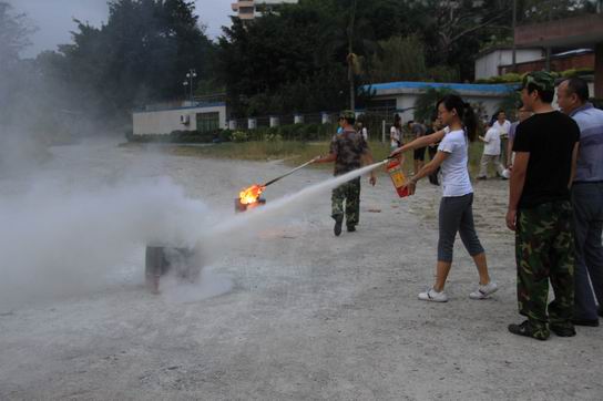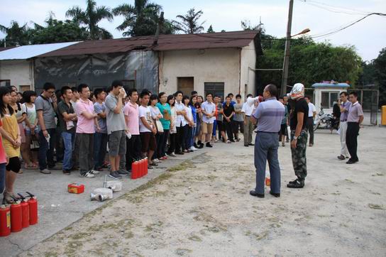下午5点整,集体宿舍大楼响起一阵阵紧急的警报铃声,宿舍内的员工在各层楼长的指引下纷纷用湿毛巾捂住口、鼻迅速且有序地按照规定路线离开宿舍大楼,前往指定的疏散集合点。 接着,保卫部康彦豪队长为大家详细讲解了消防安全方面的知识及干粉灭火器、防毒面具等消防工具的使用方法,并现场进行示范教学。随后,员工进行灭火实操技能练习。