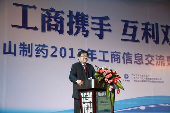 广药集团副总经理、白云山制药总厂厂长陈矛在会上发表重要讲话。讲话指出,2012年广药集团紧紧围绕广东省委省政府“加快转型升级,建设幸福广东”的战略部署,大力推进实施“136”战略、“11X”模式,打造战略性新兴产业龙头企业,推进现代产业体系建设并卓有成效。广药集团工商销售收入突破420亿元大关,同比增长近30%,荣膺中国医药工业百强企业冠军,以雄厚的实力成为医药行业排头兵。白云山总厂、光华、敬修堂在2012年保持健康、良好地发展:广东省委副书记、省长朱小丹为百年光华亲题 “百年光华,再创辉煌”的勉励与期望;白云山技术中心荣获“国家认定企业技术中心”称号;223年历史悠久的敬修堂通过调整之年蓄势待发;白云山总厂2012年销售收入突破17亿元,同比增长超20% ,连续十年保持持续稳定地增长。在品牌建设上,成绩突出。白云山商标价值283亿元,抗菌消炎药统领品牌“抗之霸”被认定为中国驰名商标。同时,白云山总厂积极部署产能扩展工作,新增四条自动生产线,头孢口服车间已通过新版GMP认证;投资7500万元,具有高度自动化管控水平的新粉针大楼建设即将完成;总投资1亿元产值达10亿元广药集团白云山制药揭西生产基地建设进展顺利。白云山总厂通过新产品开发不断寻求新的经济增长点,2014年,白云山总厂国内首仿“伟哥”产品即将上市、头孢克洛干混悬剂即将投产上市,抗病毒软胶囊也已完成再注册,除聚焦抗生素外,还不断扩展产品领域,逐渐向中脑血管药、特色中成药领域进军,国内独家产品依拉普利非洛地平缓释片近期可获批件。这些新产品将成为白云山总厂经济发展新的增长点。