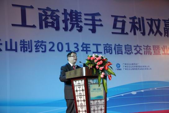 白云山股份有限公司总经理、白云山总厂常务副厂长王文楚回顾了白云山总厂、光华公司、敬修堂三家企业2012年经营情况,并对2013年宏观经济及行业政策形势进行了预判。王总指出在GDP持续增长、新医改继续前行等外部环境下,工商携手,更需要开放、合作、积极的心态,希望与各地经销商们继续战略合作,共同开创行业发展新局面!