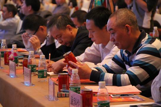 大会积极响应广药集团“同为广药人,共爱王老吉——我为王老吉出份力”的倡议,陈总在大会上呼吁各地经销商支持民族品牌“王老吉”,周志魁书记宣读“同为广药人,共爱王老吉——我为王老吉出份力”倡议书。会场上吉祥、喜庆的红罐王老吉饮料成为一大亮点,客户们对红罐王老吉表示极大的兴趣和支持。