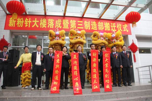 2013年12月16日,广州白云山制药总厂举行新粉针大楼落成暨第三制造部搬迁仪式。白云山制药总厂常务副厂长王文楚、党委书记周志魁等厂领导及各部门负责人、员工代表约60人参加仪式。活动由白云山总厂生产运营中心总经理许春江主持。仪式结束后,参加活动人员参观了新粉针大楼并进行了座谈。