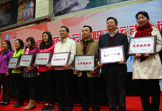 闭幕式上,广药集团工会主席黄志恩为获奖选手代表颁发了奖牌和奖杯,并对在本次运动会组织做出突出贡献的总厂等承办单位的工会负责人颁发了“优秀组织奖”。