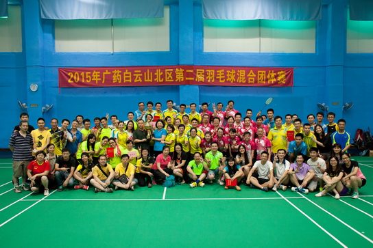 2015年5月10日,广药白云山北区第二届羽毛球混合团体赛经过两周的激烈争夺,在星动羽毛球馆圆满拉下帷幕。十个兄弟单位共181名羽毛球好手参赛。经过45场激烈的比赛,白云山制药总厂羽毛球队蝉联冠军。中一、医药公司、王老吉药业分获第二、三、四名,和黄、王老吉大健康、化学药厂、采芝林、敬修堂、何济公获得团体赛优胜奖。