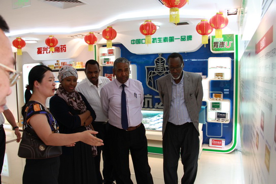 2015年5月15日下午,索马里卫生部部长哈瓦•哈桑•穆哈默德一行在国家卫计委国际司项目官员陈松恒、广东省卫计委交流合作处副调研员韦家森的陪同下到白云山制药总厂参观交流。广药集团副总经理刘菊妍、技术质量部部长赖志坚、白云山制药总厂党委书记周志魁等领导热情接待了索马里卫生部部长一行,并进行了互动交流。