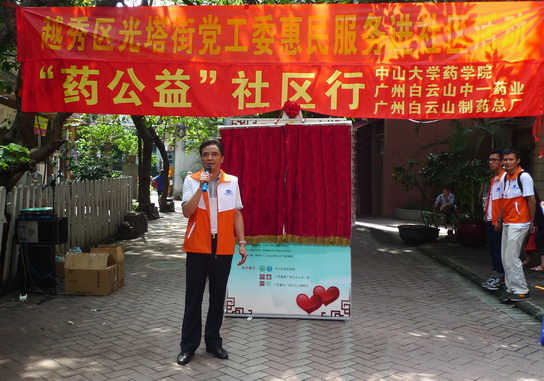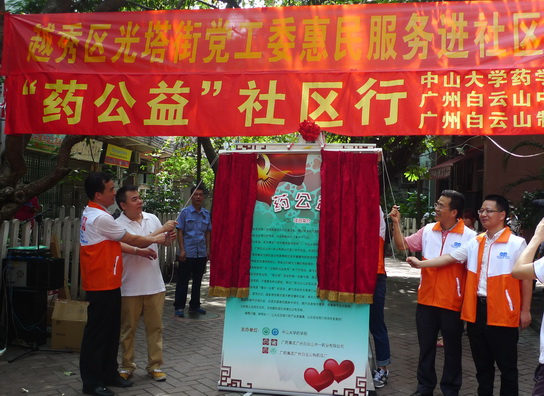 6月2日上午,白云山制药总厂联合白云山中一药业、中山大学药学院开展的“药公益”社区行——安全合理用药活动在越秀区光塔街正式启动。白云山制药总厂党委书记周志魁、广州白云山中一药业党委副书记薛敏、中山大学药学院党委副书记丁小球出席了本次活动并为公益活动项目揭幕。
