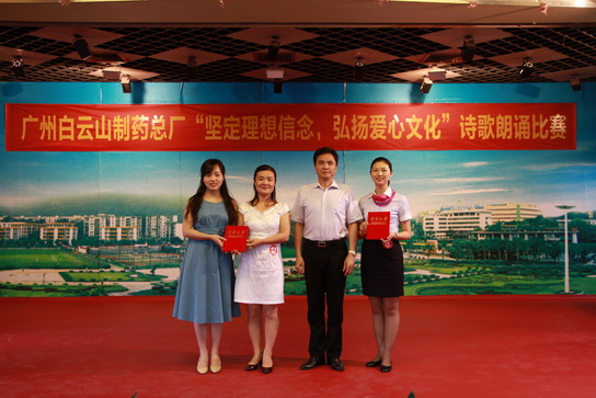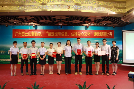 6月8日下午,由白云山制药总厂党委、纪委、团委联合举办的 “坚定理想信念,弘扬企业文化”诗歌朗诵比赛在办公楼6楼举行。党委书记周志魁,纪委书记、工会主席许镇江及近百名来自各个支部的员工代表出席了本次大赛。