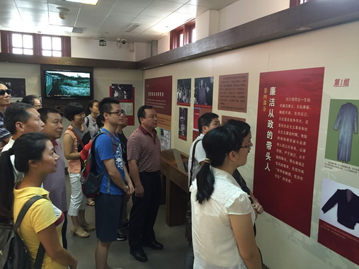 《刘少奇廉政思想与实践展览》共分为四个部分,第一部分“早期反腐的思想与实践”,第二部分“防治腐败的理论探索”,第三部分“建立健全廉政制度的杰出贡献”,第四部分“勤政廉政的楷模”,集中展示了一代伟人刘少奇的廉政思想与反腐实践。刘少奇是廉洁从政的带头人,他始终保持艰苦奋斗品质和人民公仆本色,以身作则,严于律己,从不搞特殊化,带头做端正党风的表率,在党内有“修养称楷模,党员作范仪”的美誉。他认为,惩治腐败,加强廉政建设,一定要标本兼治,长抓不懈。通过参观《刘少奇廉政思想与实践文物图片展》,广大党员干部重温了历史,深深体会了刘少奇同志的反腐倡廉思想并深受教育。
