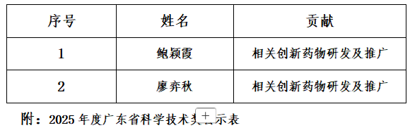 兹有下列同志作为《慢性心衰的新靶标发现及候选新药研究》课题组成员申报2025年度广东省科学技术进步一等奖,现予以公示。公示时间从2025年12月19日至2025年12月25日,如对以上人员申报资格有异议,请在公示期间电话或书面联系组织人事部(87233055)反映。
