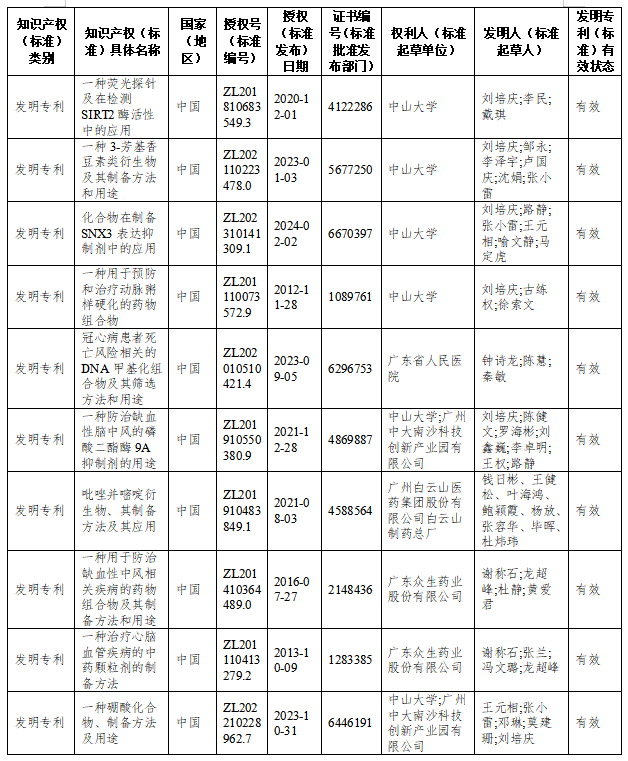 中山大学、广东省人民医院、广州白云山医药集团股份有限公司白云山制药总厂、广东众生药业股份有限公司