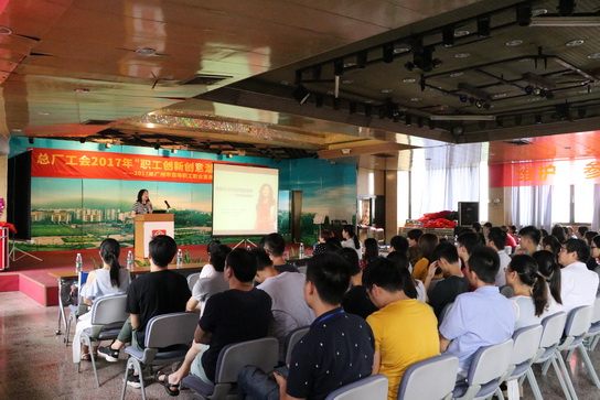 2017年7月24日,借广州市总工会开展百场职业能力发展辅导课程送基层活动这项惠民工程之契机,总厂工会在六楼会议室举办2017年职工素质提升讲座——职工创新创意潜能开发。讲座邀请到国家高级职业指导师、广东省青年创业就业委员会理事、广州工程技术职业学院就业指导中心主任林壬璇副教授为职工授课。总厂工会主席蔡淑君及近百名职工参加了本次培训。