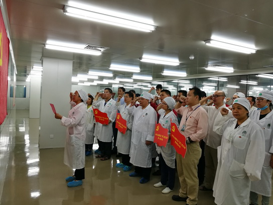 接着胡爱华书记作签名承诺动员讲话,第二党支部主题党日活动在头孢新车间的现场开展意义重大,第二制造部GMP认证工作是总厂乃至广药集团的重点工作任务,对总厂的生产经营活动影响深远,此项目经过两年的筹划推进落实,10月16日将进入现场工艺、清洁等验证实施阶段。“两学一做”学习教育常态化制度化,“学”是基础,关键在“做”,以本次重点项目现场实施为契机,利用休息日开展主题为“党旗飘起来,党员干起来”主题党日活动,更能突显我们党员的无私奉献精神,加强党性修养,做好“亮身份、作表率、做合格党员”承诺。