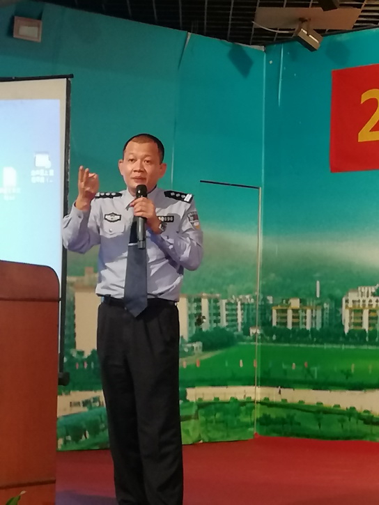 防火管理大队三级警长陈庆洪进行宿舍消防安全演讲