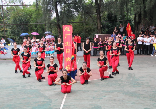 一首“火火的爱”将一部的风采在2013年“厂庆杯”广场舞比赛上发挥得淋漓尽致。精心策划、细心编排、别具特色!小丑出场是我们广场舞比赛的亮点,给整场比赛增添了不少欢乐的气息。虽然,我们仅以0.002分之差落后,未能夺冠,但我们仍然十分兴奋。只因我们都明白,只要把自己的水平赛出来,无悔于自己,已经很满足了!