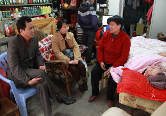 1月22日,广药集团总经理、副董事长、党委副书记、总厂厂长陈矛在集团公司办公室主任陈必根、总厂工会主席许镇江及工会相关人员的陪同下,走访慰问了身患重大疾病的退休高级工程师张霖和老同志,并送去慰问品。在张霖和家中,领导们亲切地与她拉起家常,关心她的身体情况,老人家非常感激集团及厂领导的关心,脸上洋溢着幸福的笑容。节日期间,总厂领导周志魁书记、朱少璇副厂长、刘汉明副厂长、许镇江主席也分别上门慰问了部分患病员工,为他们送去组织的关爱。