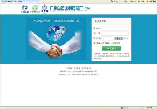 白云山制药总厂供应商关系管理(SRM)系统登录界面