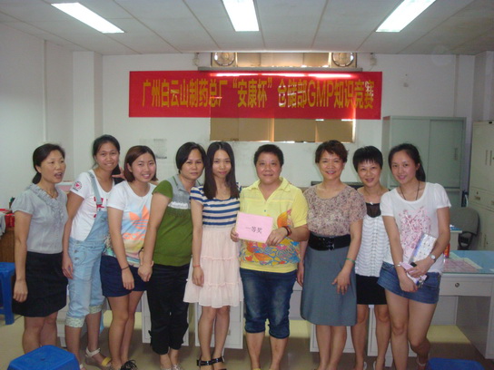 2014年7月,仓储部积极参与白云山总厂2014年度“安康杯”劳动竞赛活动,结合本部门实际工作情况,以仓库安全卫生巡查、岗位业务实操考核以及岗位知识竞赛为主题,举办了“广州白云山制药总厂安康杯-仓储部GMP知识竞赛”的活动,总厂工会主席许镇江、工会负责人郑华莅临指导竞赛活动。