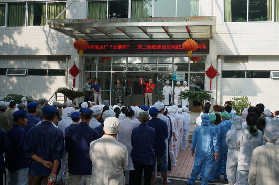 “强化红线意识,促进安全发展”是总厂2014年“安全生产月”的主题。为了贯彻“安全第一,预防为主,综合治理”的方针,继续推进总厂的安全文化建设,提高员工的安全素质,为实现总厂2014年“产业升级,引领发展,促总厂效益规模再上新台阶”的工作主题保驾护航。第三制造部结合总厂“安康杯”活动的安排及要求和部门自身安全生产的特点,以贴近实际,突出主题为这次活动的重点,通过精心策划和组织,开展了一场别开生面的新粉针大楼人员应急疏散及消防器材演练。