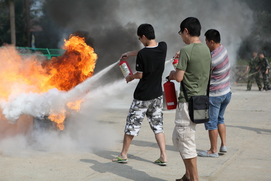 首先我们请了总厂保卫部的康彦豪队长为我们做了干粉灭火器的操作培训。他演示了怎样用干粉灭火器灭火,他一边讲解一边示范,他还教我们一个常识,“当火里面有油时,千万不能用水来灭火,要用干粉灭火器灭火”。接着他还给我们示范了防毒面具的正确使用方法。