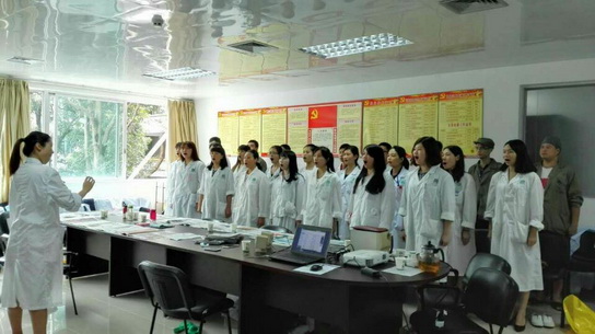 7月10日,白云山制药总厂组织举办了以“坚定理想信念、弘扬爱心文化”为主题的歌咏比赛,激励全体员工立足岗位,艰苦奋斗,敬业奉献。第三党支部叶万青书记高度重视,积极组织部门人员参加,部门支部委员在员工中大力宣传,扩大员工参与面,各车间的员工也都踊跃报名参加,在短短的时间内,就组成了一支由年轻一代参与的合唱团队,通过几轮的筛选,最终确定了由工艺员唐媛为指挥的25名员工参与的合唱队。