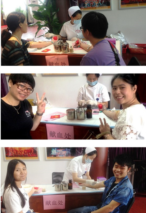 上午8:40,在血站人员来临之际,38名志愿献血的员工早已到达献血集中地点——排练厅等候。在现场工作人员协助下,填表、排队登记、检查血型、抽血,一切井然有序。总厂每个部门员工都积极参与,有来自制造部的,有来自仓储部的,也有来自质量管理部的……献血队伍中,有第一次献血的员工,既紧张又兴奋,也有曾多次献血的员工,神态自若;面对抽血,大家谈笑风生,现场的气氛愉快而轻松。现场工作人员为每一位献血员工送上温暖的葡萄糖水和蛋糕,叮嘱每一位献血员工,献血后要多喝水、多注意休息,让爱心也温暖着每一位献血员工。活动现场更准备了折叠床、急救箱等,以备急需之用。看着从手臂中不断流出的殷红献血,我们都感到无比的高兴和自豪,我们鲜血可以挽救处于危急的生命,每人献出一滴血,将汇成生命的海洋。