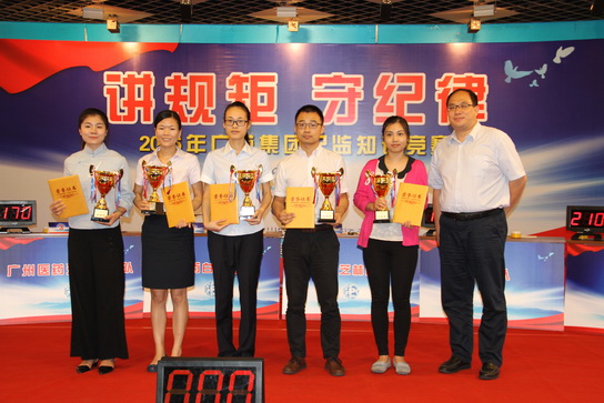 2016年9月8-9日,广药集团2016年“讲规矩、守纪律”纪监知识竞赛在白云山制药总厂六楼会议室隆重举行,集团及司属企业的相关领导出席了比赛。本次比赛共有26支队伍司属企业队伍参加, 总厂选派了第二制造部的胡易东、黄瑜、药研所的黄引、工会的陈泽楠等参加此次比赛;经过前期学习和练习配合,总厂选手在初赛中以小组第一名的好成绩进入了决赛,并在决赛中奋力拼搏荣获第四名优胜奖。