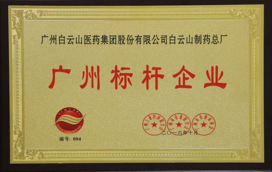 会上,为表彰总厂在多年发展中创造的突出成绩以及在行业和区域中树立的标杆典范作用,广州三会会长王东胜现场授予白云山制药总厂“广州标杆企业”荣誉牌匾。