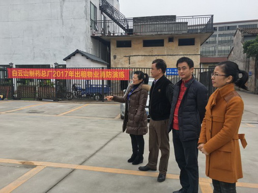 2017年1月17日下午3点整,白云山制药总厂2017年出租物业消防演练在同泰路1479号原生化所提炼车间地块北面停车场正式拉开序幕。这次演练由政工部、保卫部、安全环保部联合举办,包括生化所、千秋公司以及图雅蒙古餐厅等承租户的大部分员工都参加了活动,总厂党委书记周志魁也亲临现场观摩指导。