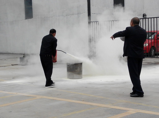 这次消防演练活动包括防毒面具的佩戴、手提式灭火器的使用、35公斤拖拉式灭火器的使用、湿布灭火以及实操演练等五项内容。总厂保卫部康彦豪队长对每一项演练内容都进行了细致生动的讲解,并由保卫部的经警们密切配合演示,力求将每一项内容的重点、要点及技巧传授给参加活动的所有人员。在场人员也受到感染,对现场的消防器材及其使用产生了极大的兴趣,并踊跃地进行了实操演练。