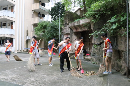 总厂职工在总厂青年之家和谐家园门口进行清扫卫生