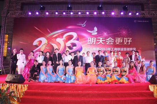 9日晚,“2013,明天会更好”文艺汇演正式拉开帷幕,白云山总厂职工业余艺术团为与会人员献上了一台精彩的文艺演出,丰富多彩的节目点燃了在场人员的激情,由白云山总厂副厂长朱少璇、白云山总厂第一制造部郑华演唱的女声二重唱《深深的海洋》,由白云山总厂经营部陈桂春等演出的舞蹈节目精彩纷呈,引爆全场,赢得了在场人员的热烈掌声。本次工商信息交流会圆满落下帷幕。