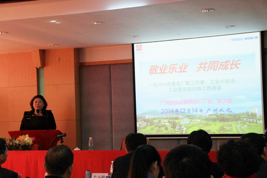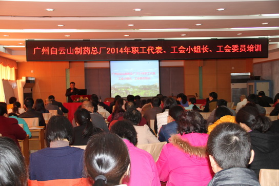 2014年12月13-14日,白云山制药总厂在从化大健康酒店举办职工代表、工会小组长、工会委员培训。总厂130多名职工代表、工会小组长、工会委员积极参加了培训活动,会议受到了厂党政领导班子的大力支持,总厂厂长朱少璇、党委书记周志魁、副厂长郑丽真、副厂长刘汉明、总工程师许春江出席了会议。会议由纪委书记、工会主席许镇江主持。