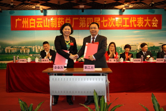 大会通过了第四届七次职代会决议。大会号召全体员工按照广药集团振兴大南药、发展大健康、推进大商业、开拓大医疗“四轮齐驱”,一体化运作,规范化管理,多元化发展“三管齐下”的发展方针,大力推进依法治企,实现产业结构的改善,产业素质的增强,产业效率的提高,为广药集团冲击千亿俱乐部、2020步入世界500强的目标,为早日实现总厂的企业愿景而奋斗!