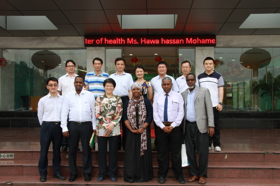 2015年5月15日下午,索马里卫生部部长哈瓦•哈桑•穆哈默德一行在国家卫计委国际司项目官员陈松恒、广东省卫计委交流合作处副调研员韦家森的陪同下到白云山制药总厂参观交流。广药集团副总经理刘菊妍、技术质量部部长赖志坚、白云山制药总厂党委书记周志魁等领导热情接待了索马里卫生部部长一行,并进行了互动交流。