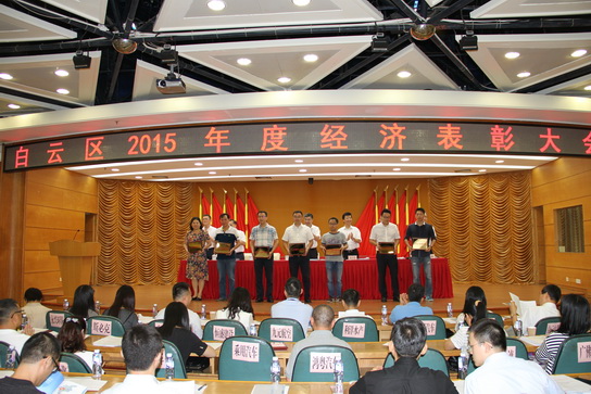 2016年8月11日下午,白云区召开2015年度经济表彰大会,白云山制药总厂斩获白云区经济突出贡献奖、认定为区创新型企业两项殊荣。白云区区委书记马文田、区长苏小澎等领导出席经济表彰大会,朱少璇厂长参加了颁奖仪式。